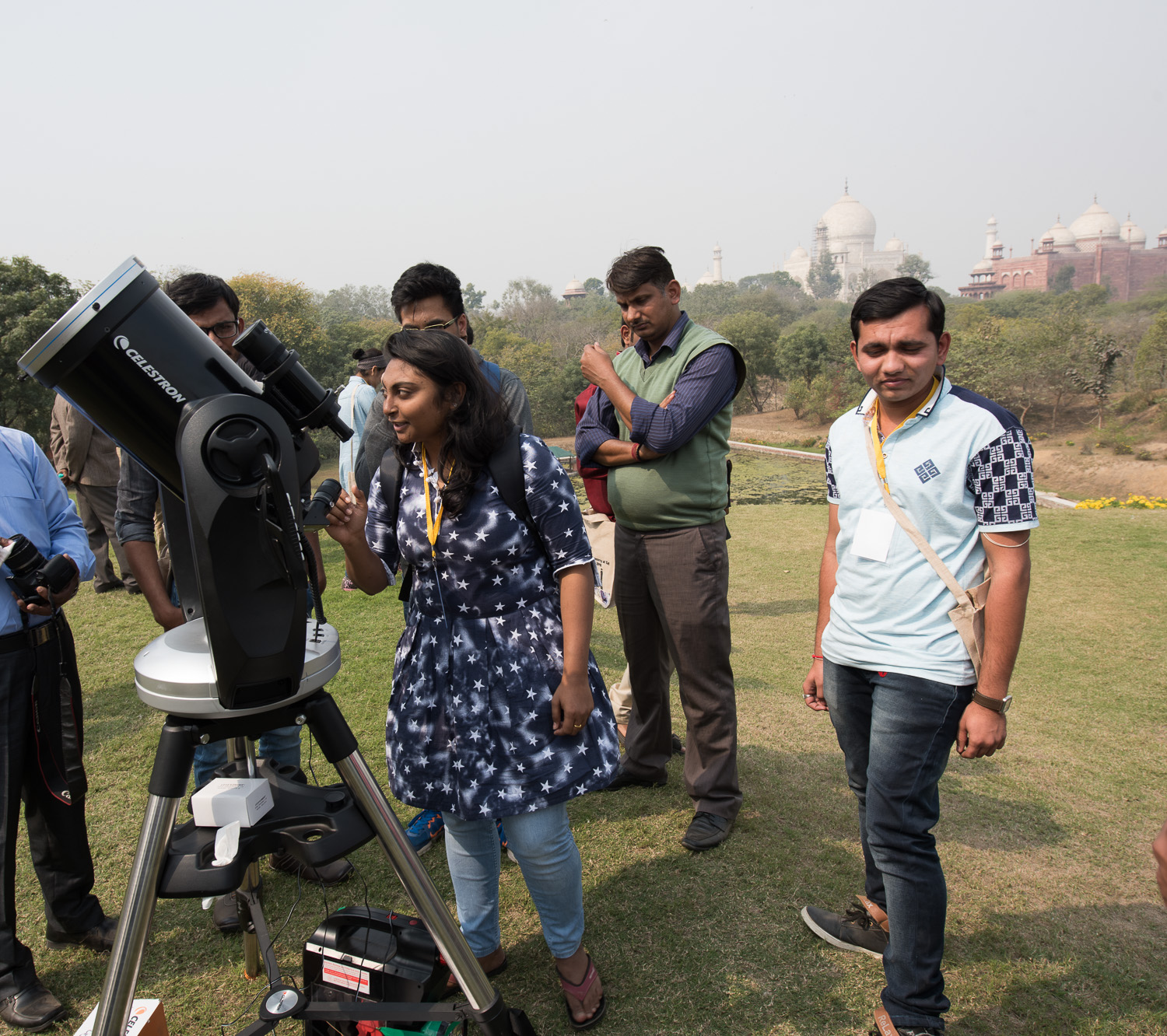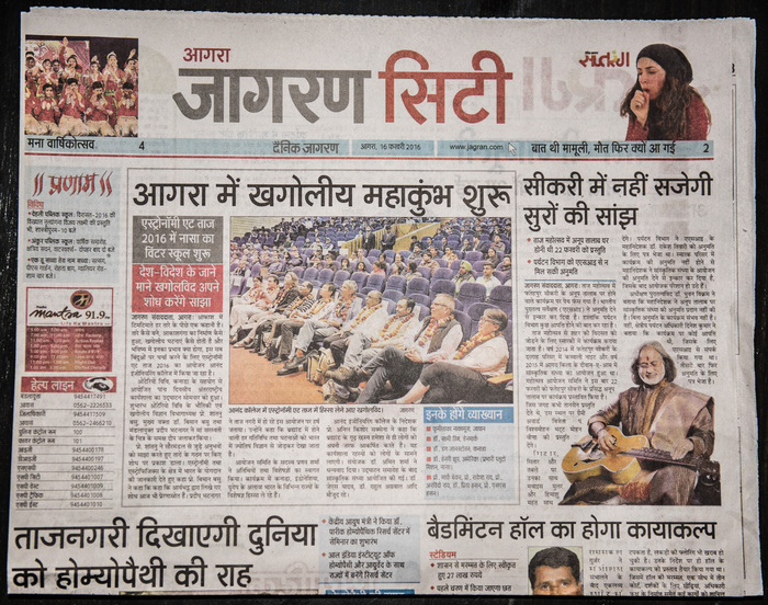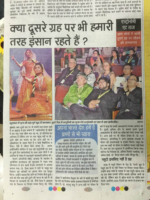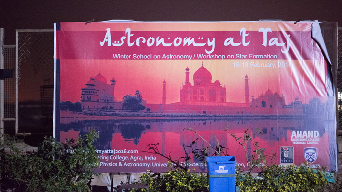 The conference was attended by roughly 30 undergraduate Indian astronomy & physics students, and a dozen Canadian students. There were another 50+ engineering students from the host institution, Anand Engineering College, in Agra. Most of these local students helped put the conference together. While India has some well-developed infrastructure in astronomy, most of it is centered in a few places (Bangalore, Pune, maybe Delhi?) so many students across the country don't get a lot of exposure. This was perhaps the first astronomy meeting in Agra ever. Besides tourists coming for the Taj, Agra is not regularly visited... the closest commercial airport is 3-4 hours away in Delhi. Our conference was at the College on the outskirts of Agra, about 90 minutes away from the Taj itself.