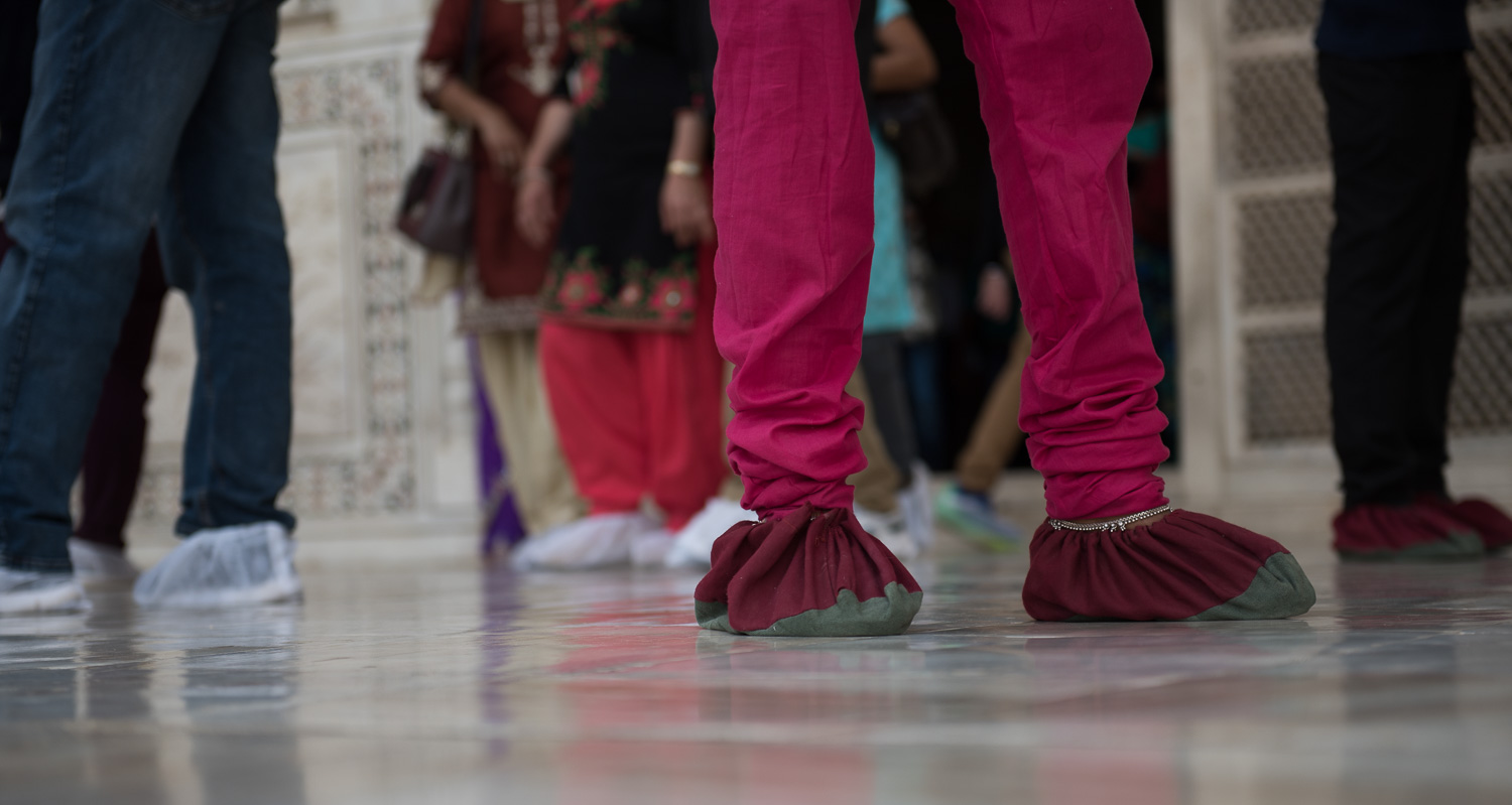 | Shoe covers are mandatory inside. Most people use the standard-issue ones, although some bring their own. |