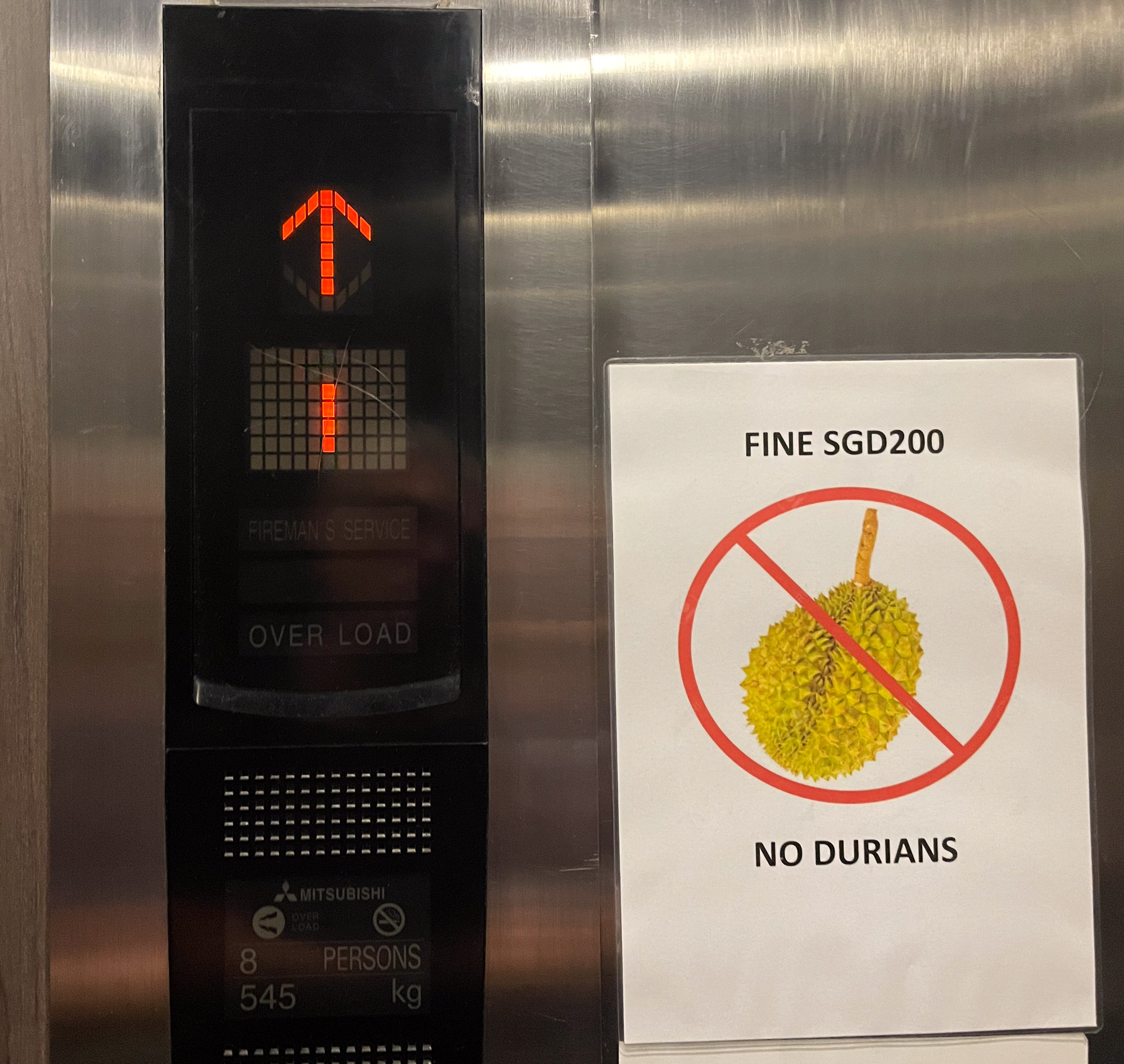 | The obligatory anti-durian sign. Look, I don't love that fruit more than any others, but I do feel sorry for it being singled out. |
