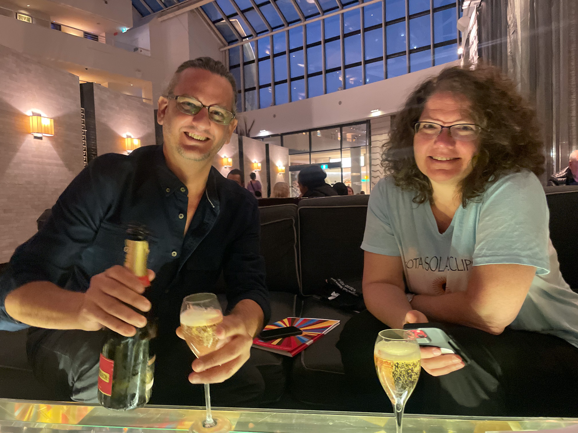 | A bit of post-eclipse in-flight champagne! |