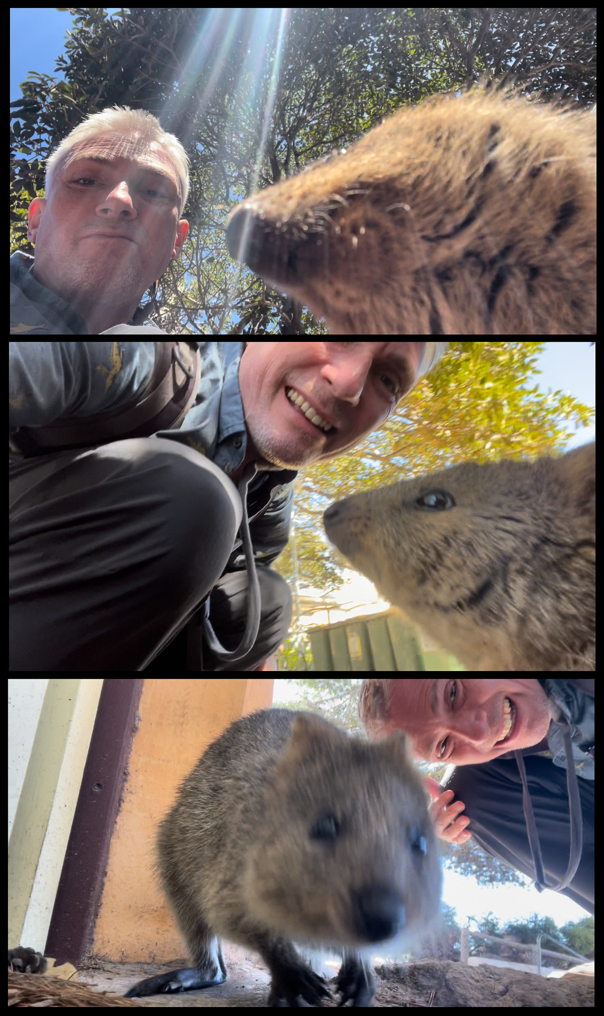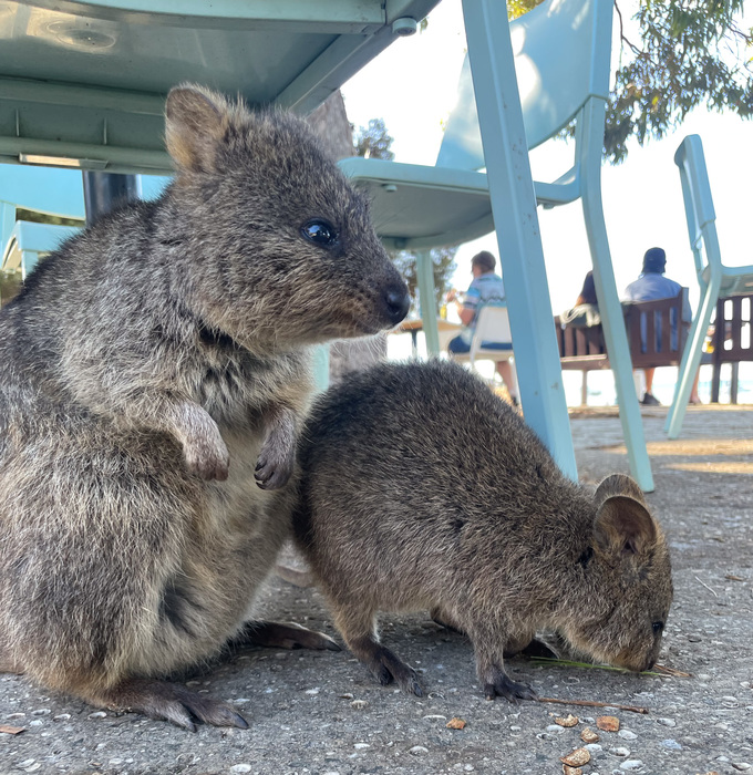 | HIghly popular among the cogniscenti these days is to take a quokka selfie. Here's my attempts. |