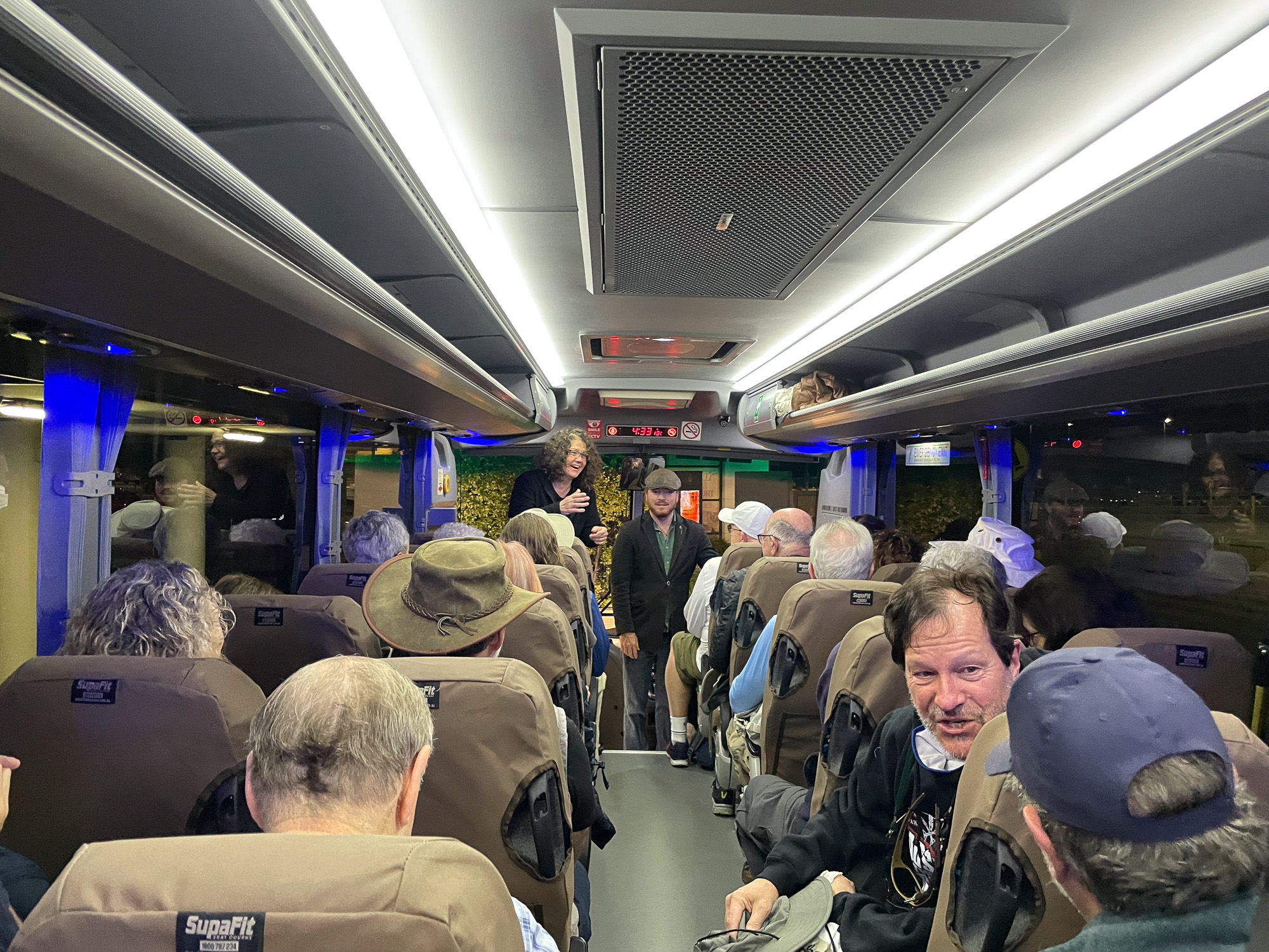| Getting on the bus... Vicky and our bus driver Sam at the front. |