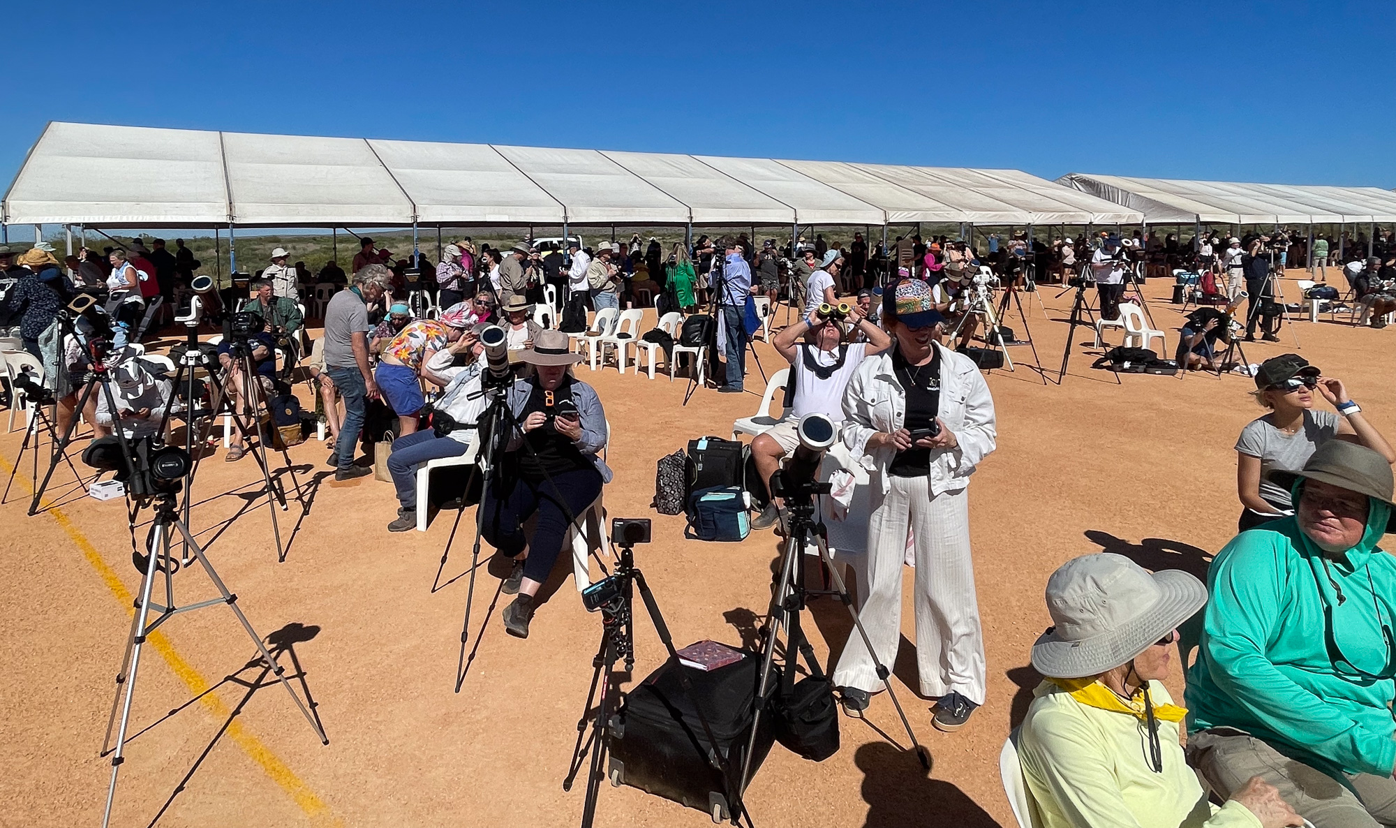 | Lots of telescopes set up by eclipse fans. |