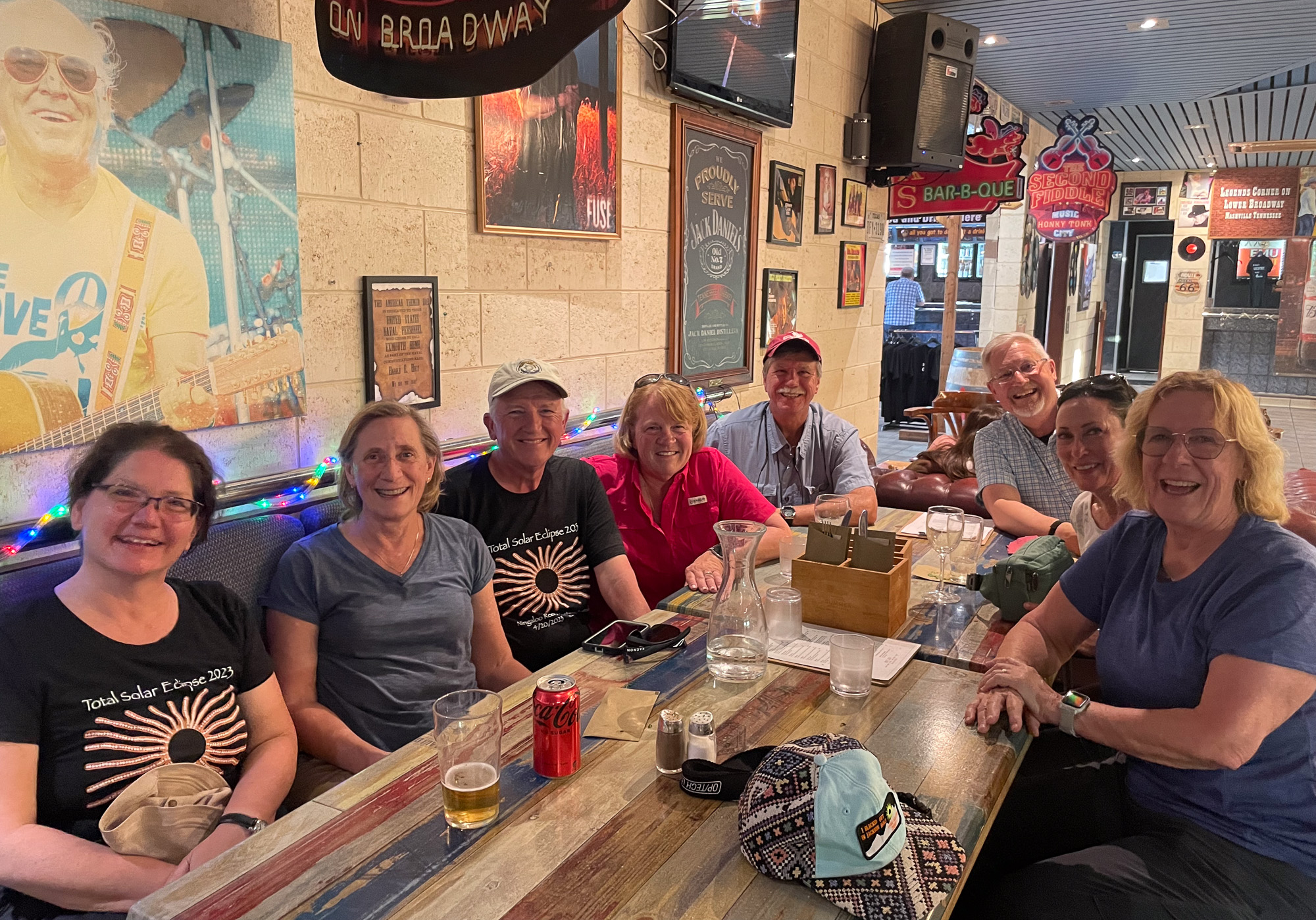 | What do do post-eclipse? We've got about 8 hours until our flight out. We walk around the town a bit, before heading to the local country bar. That's Brandon, Travis, Bill, and Karn around our table. |
