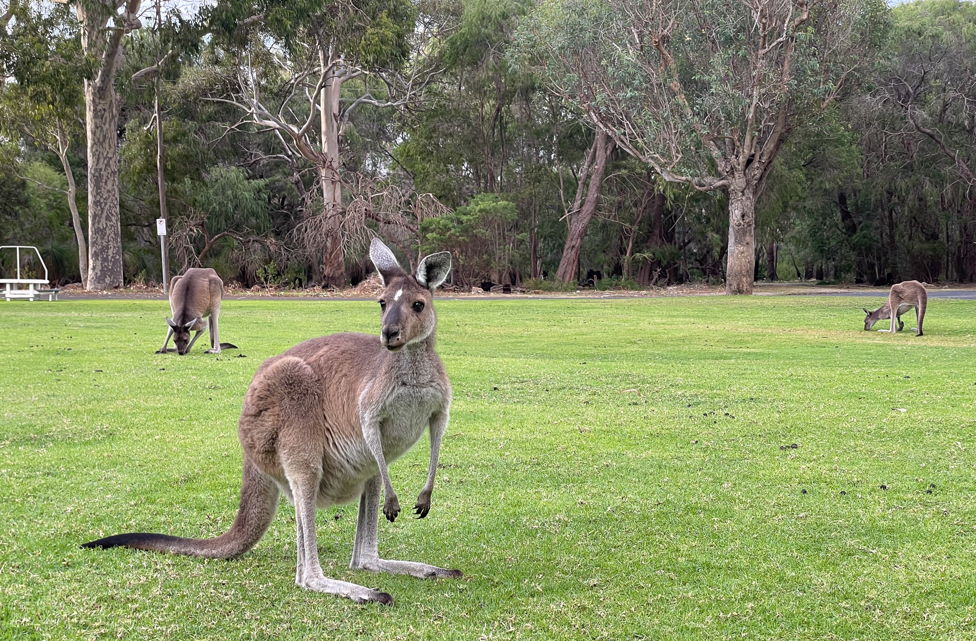 | Kangaroos! As common as they are, this was the first time we'd seen them up close. They are free-roaming, and particularly like the grassy areas of the park. |