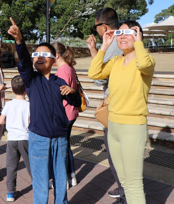| Looking at the sun through the glasses! I gave out nearly 300 pairs of glasses at this event. |