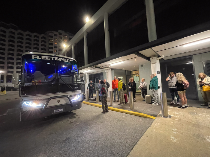 | It's the 4 AM party bus! Bus driver Sam tells us that we're not alone: the title track of AC/DC's Highway to Hell was written about the very road that we're driving on right now (Canning Highway, Perth). |