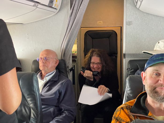 | Go Vicky! In 20 years of running eclipse trips, this was the second jet she's chartered -- the other one was a full 737 to Svaalbard. Jeff and Ross pay attention. |