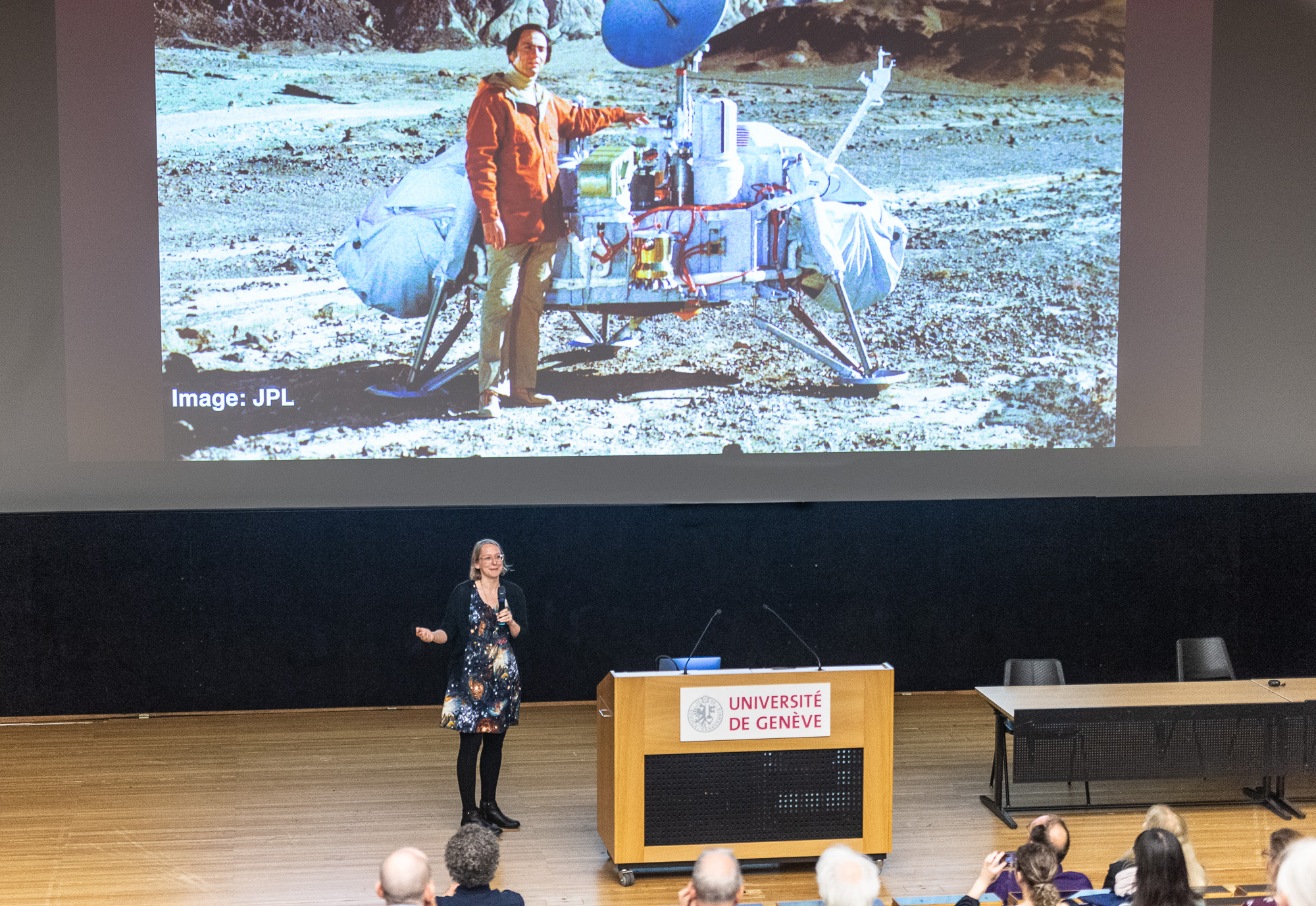 | Carrie Nugent gives the Sagan lecture at the DPS-EPSC meeting in Geneva. |