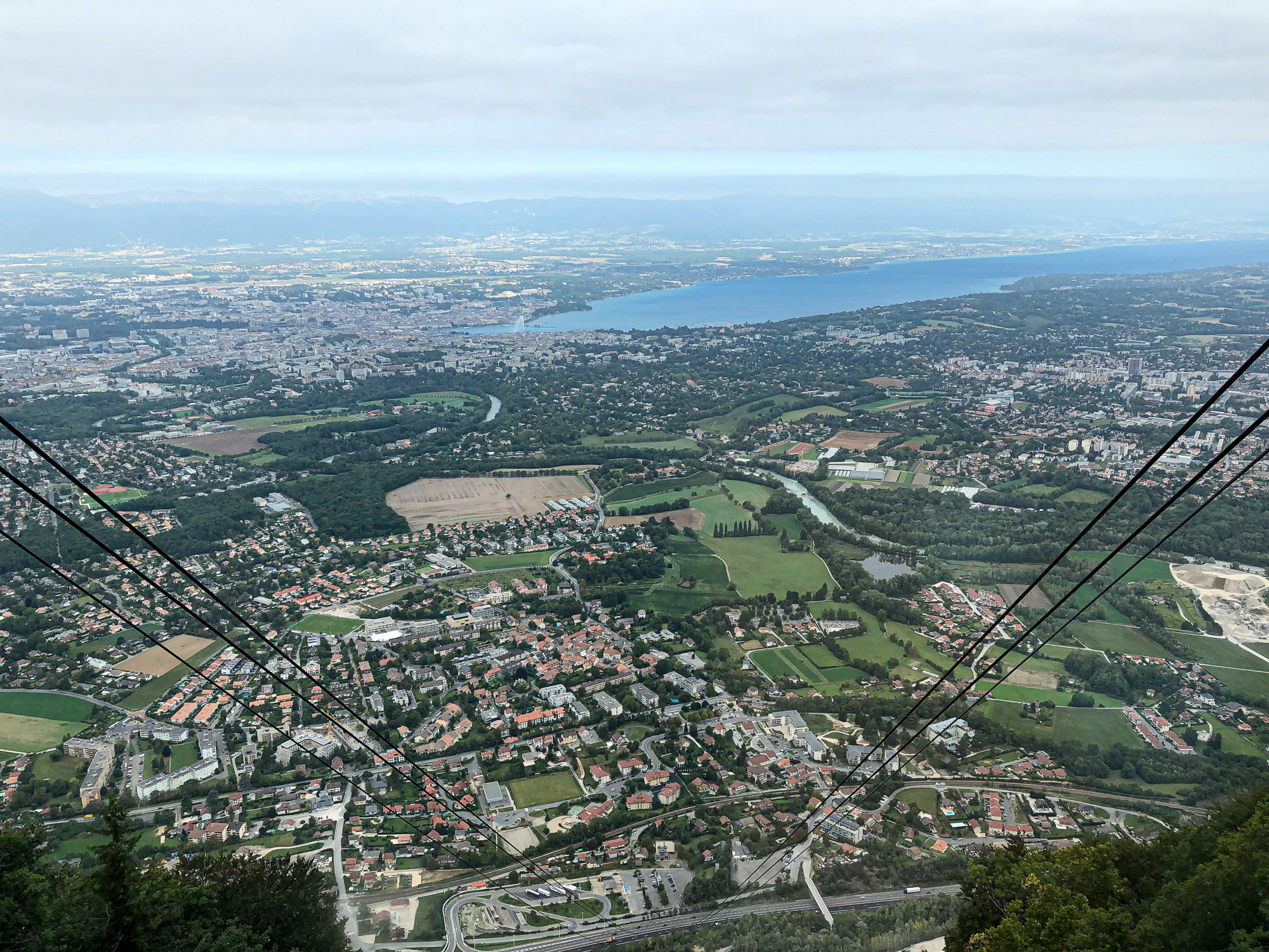 | I took one morning off and went to the cablecar on the edge of Geneva, which goes up about 800 meters above the surrounding area. I was hoping to see a bit above the clouds -- but not this day. |