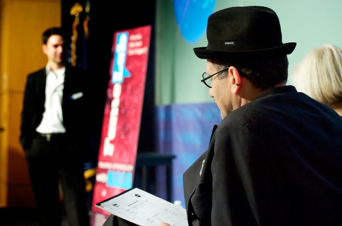 The auditorium at the National Geographic Explorers Hall, Washington DC, for the evening round. |
