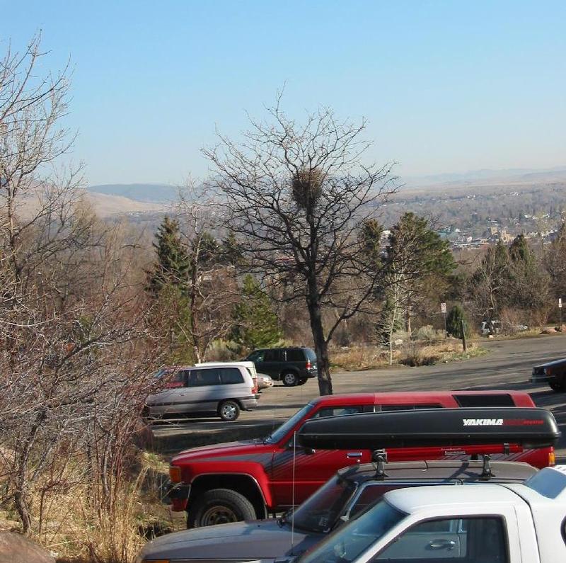 Chautauqua parking lot; unremarkable except for the presence of the alleged raptor nest. Apparently the raptors dislike climbers during the various rock closures, fleeing instead to nestle comfortably between the SUV's and Subarus of the lot.