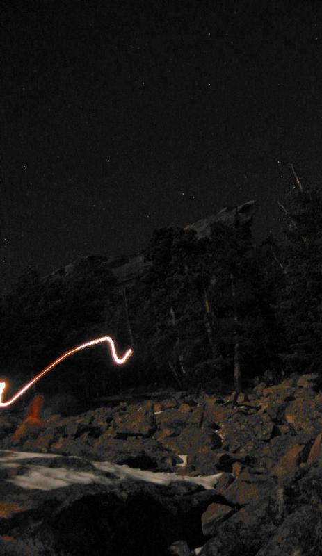 Through the boulder field. Fathi is the one in the orange jacket with the headlamp.