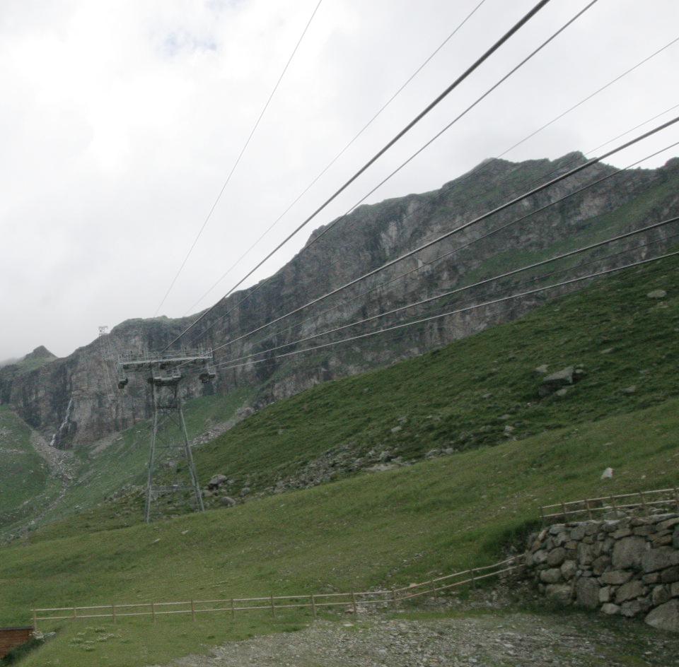 Whoa! We are about to ascend the monster gondola up the monster cliff. During the winter months, skiiers do amazing aerials over these rocky protuberances.