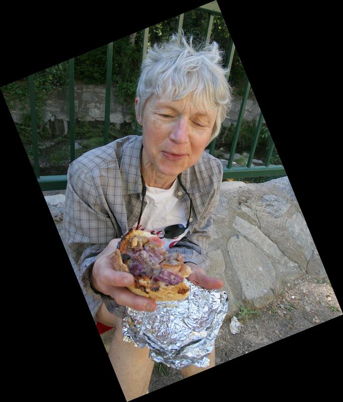 JMT munches on rhubarb pies the next morning, a victim of my recent rhubarb-baking kick.