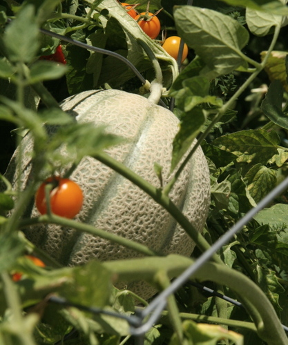 Other items include zucchinis, cantaloupes, and a whole lot of volunteer