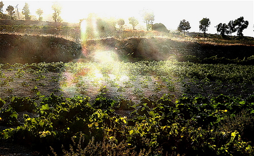 no trellising, etc. Also, they are not watered (`dry farming'), and the vines are planted