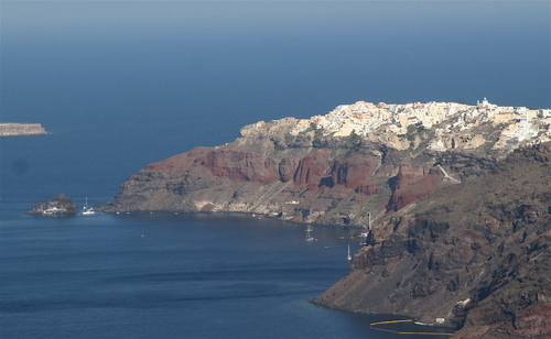 3000 or so). Oia is the town along the ridgeline at the distant left. There