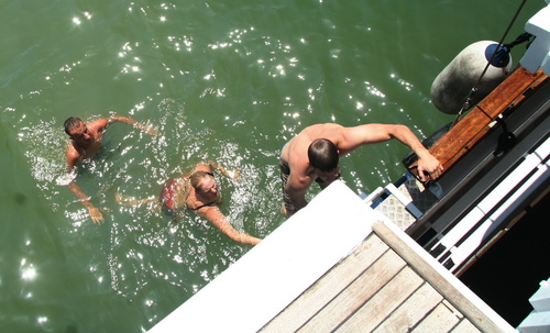 | I watched the guy row his ~7-y.o. daughter out to their boat. He lifted her