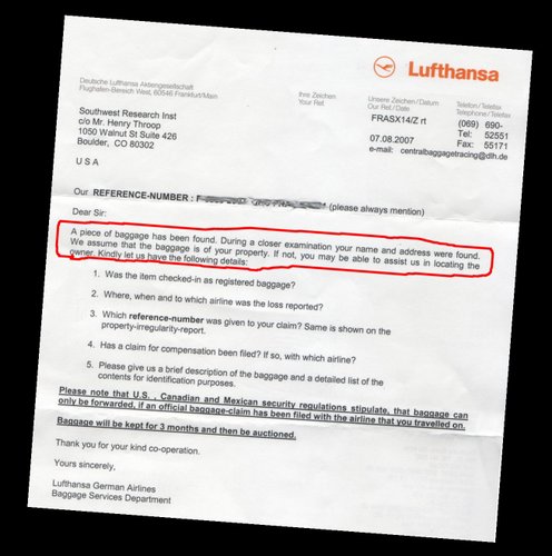 | A couple weeks after I returned, I got a nice note from Lufthansa telling me