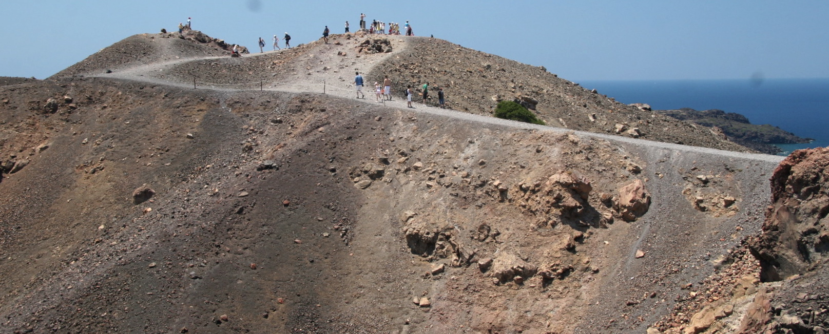 Toward the top of the volcano. The whole volcano is 500 years old. I think this material here is a bit newer than that, but not much. Dig down a foot or two and the rocks are all smokin' hot, though. Very nice.