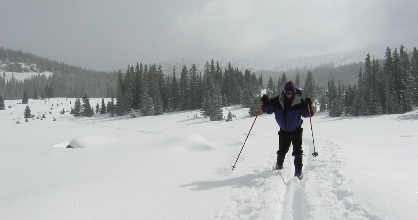 I ski the wrong way, which is why I am not catching up with the rest of the group to my far right.