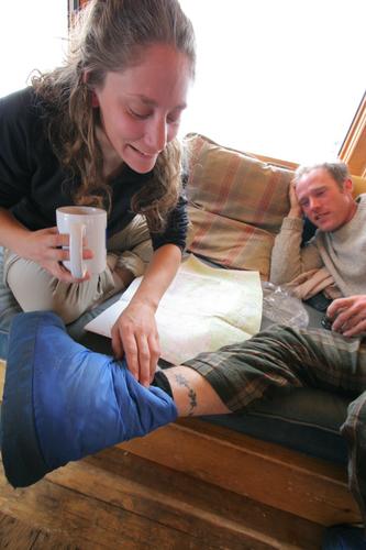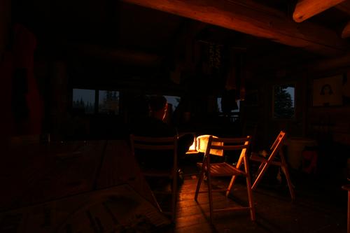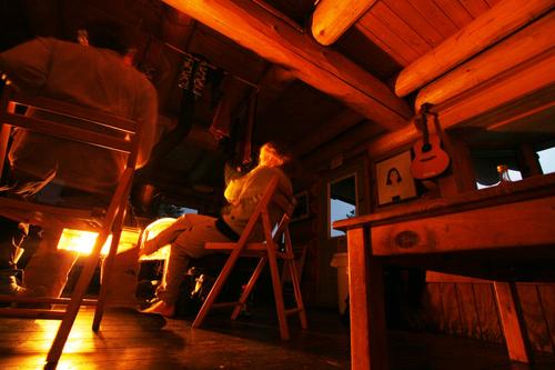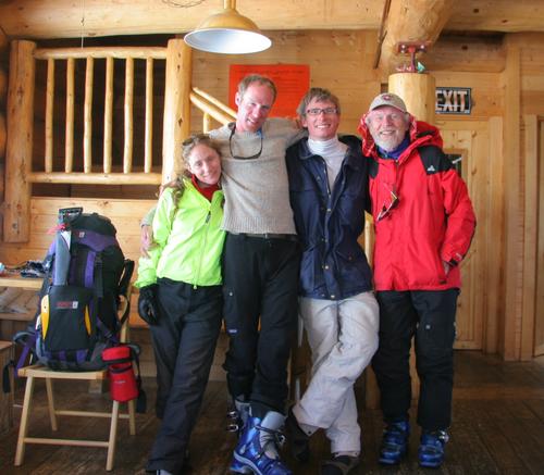 | We left the hut in good hands; unfortunately, it's listing significantly upon