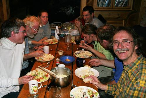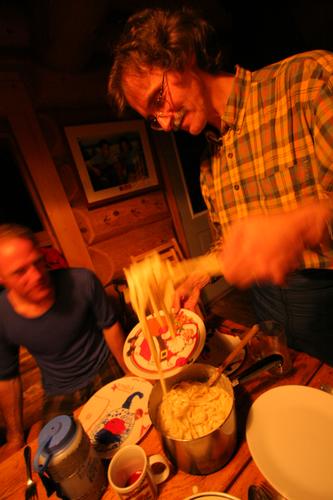 | By Saturday PM, John/Al/Amy have arrived. John dishes up the linguini as we