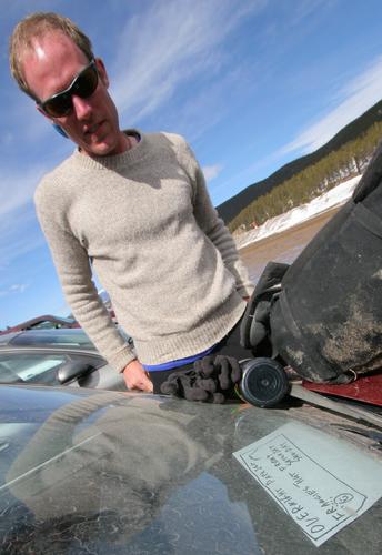 | John, our parking-lot neighbor, shows us how the experts do it. (He's passing