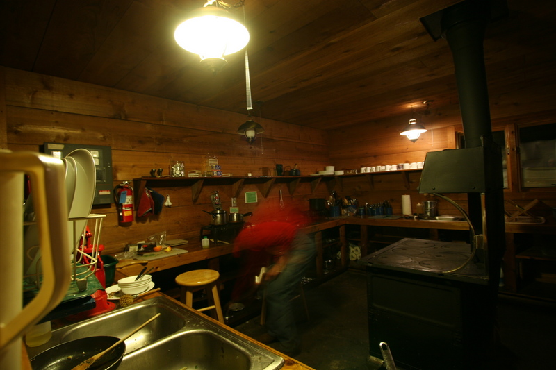 Aaron gets some kitchen action going at that hut.