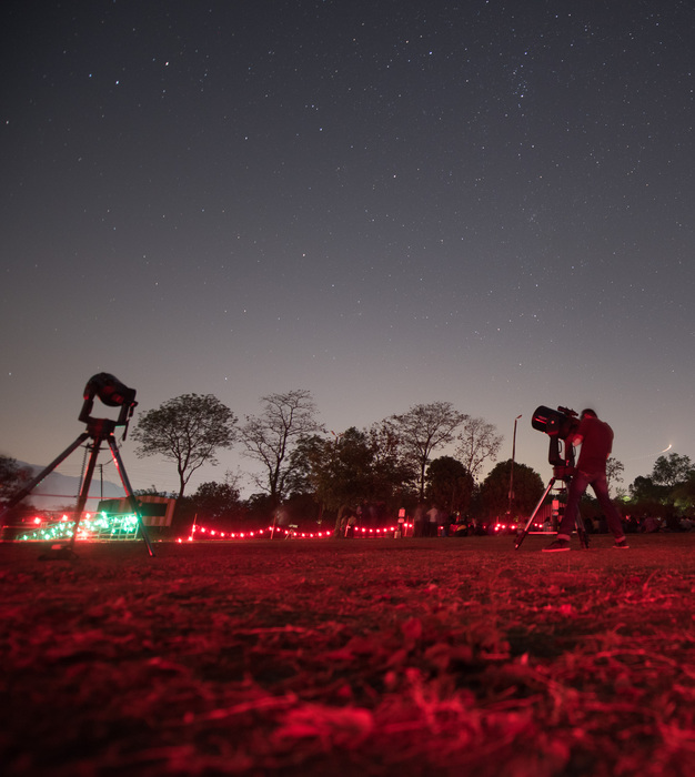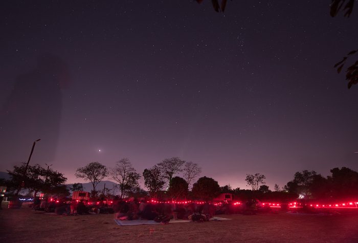 But in scoping out the astronomy scene before we got here, I came across the web page of an amateur astronomy group, Khagol Mandal ('Cosmos Club', in the local Marathi). Their Indian form of 'star party' looked incredible, down to the very detailed instructions of which trains to take, and a minute-by-minute observation plan including midnight dinner and 3 AM tea break. Up until now, I hadn't crossed paths with them. But as luck had it, they invited me to give a talk, and one of my colleagues was taking her Astrobiology class there for the night, so I headed out to their dark-sky site about two hours outside of Mumbai for their all-night star party.