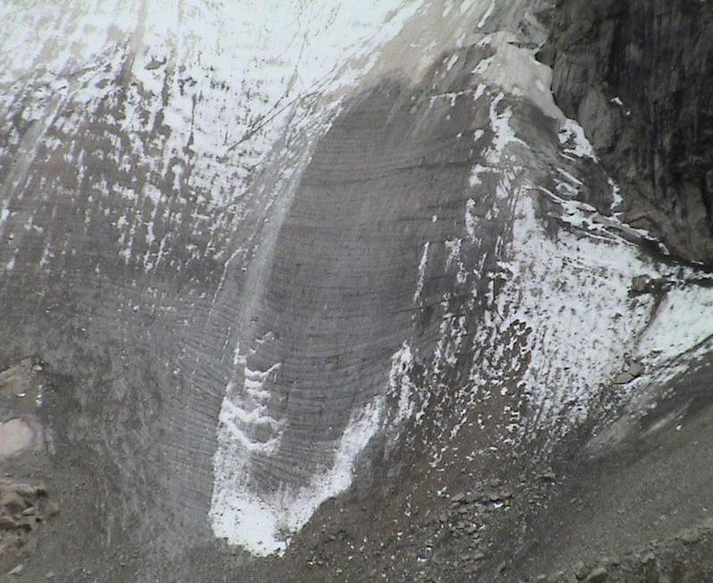 Check it out! Crossbedding in the glacier! This is wild. Size scale is a maybe a few feet between the smallest features.