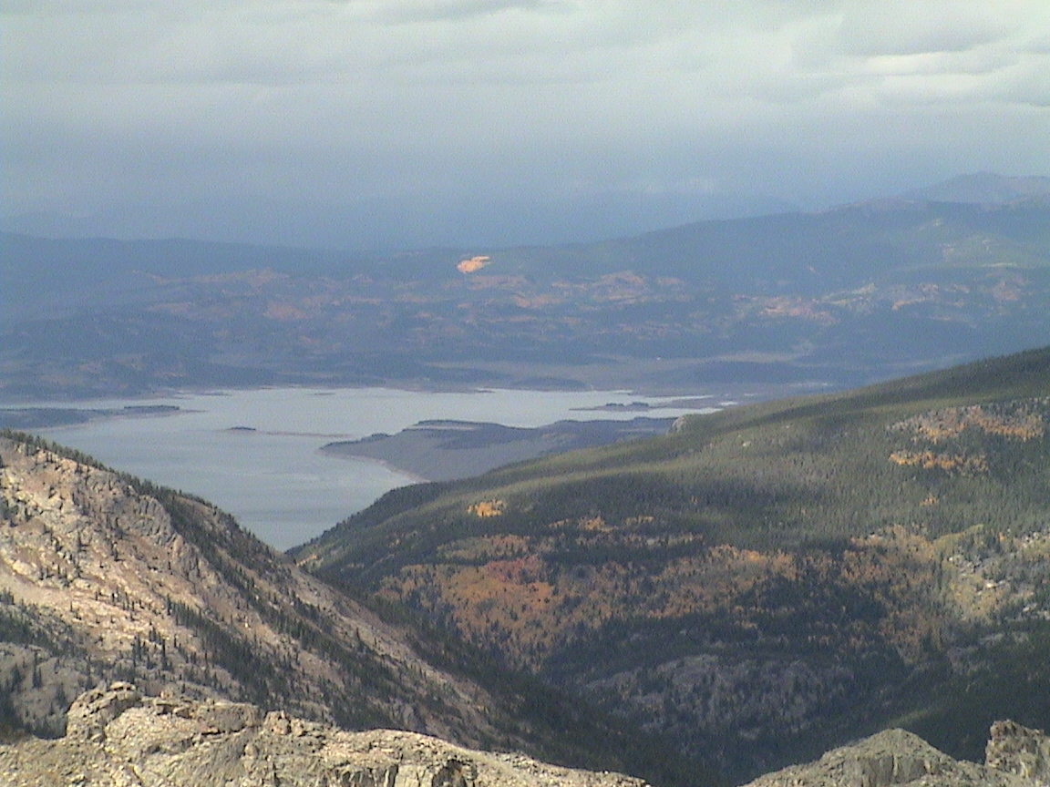 Hiking back over the divide, looking on Grand Lake, the hills burning with aspen.