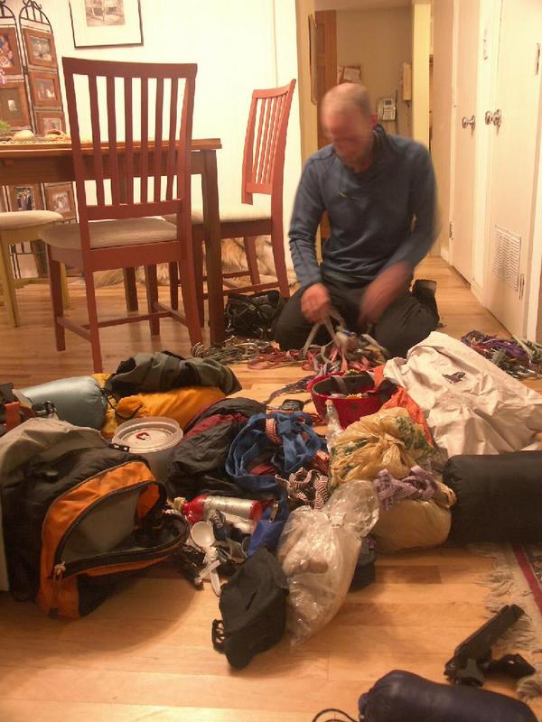 Chuck sorts through booty collected on the route.