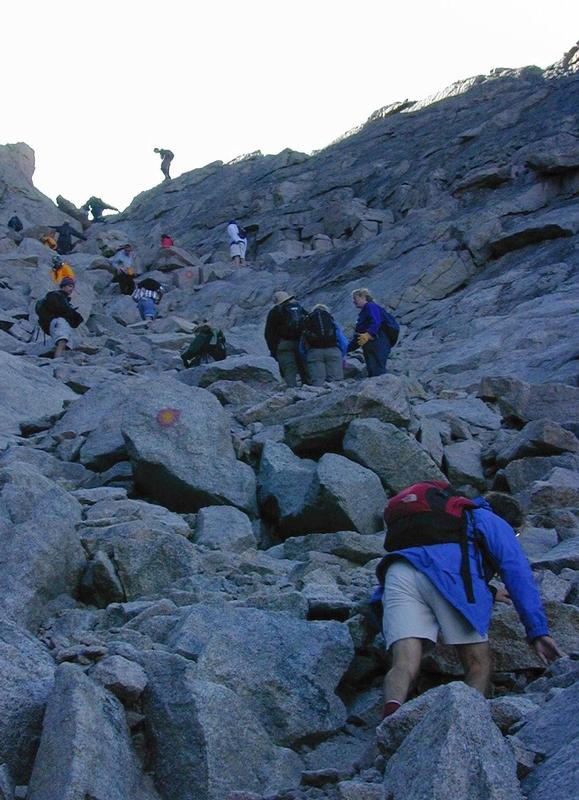 Climbing up 'The Trough.' Note the conveniently-painted symbols marking the route.