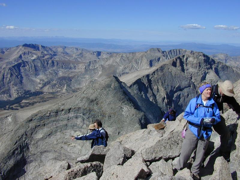 Emerging to the summit. (Note Grays & Torreys, the next-closest 14ers, as a pair of mountains on the distant horizon, 3/4ths of the way to the left. These were named for a pair of Harvard botanists, who also lost their apostrophes.)