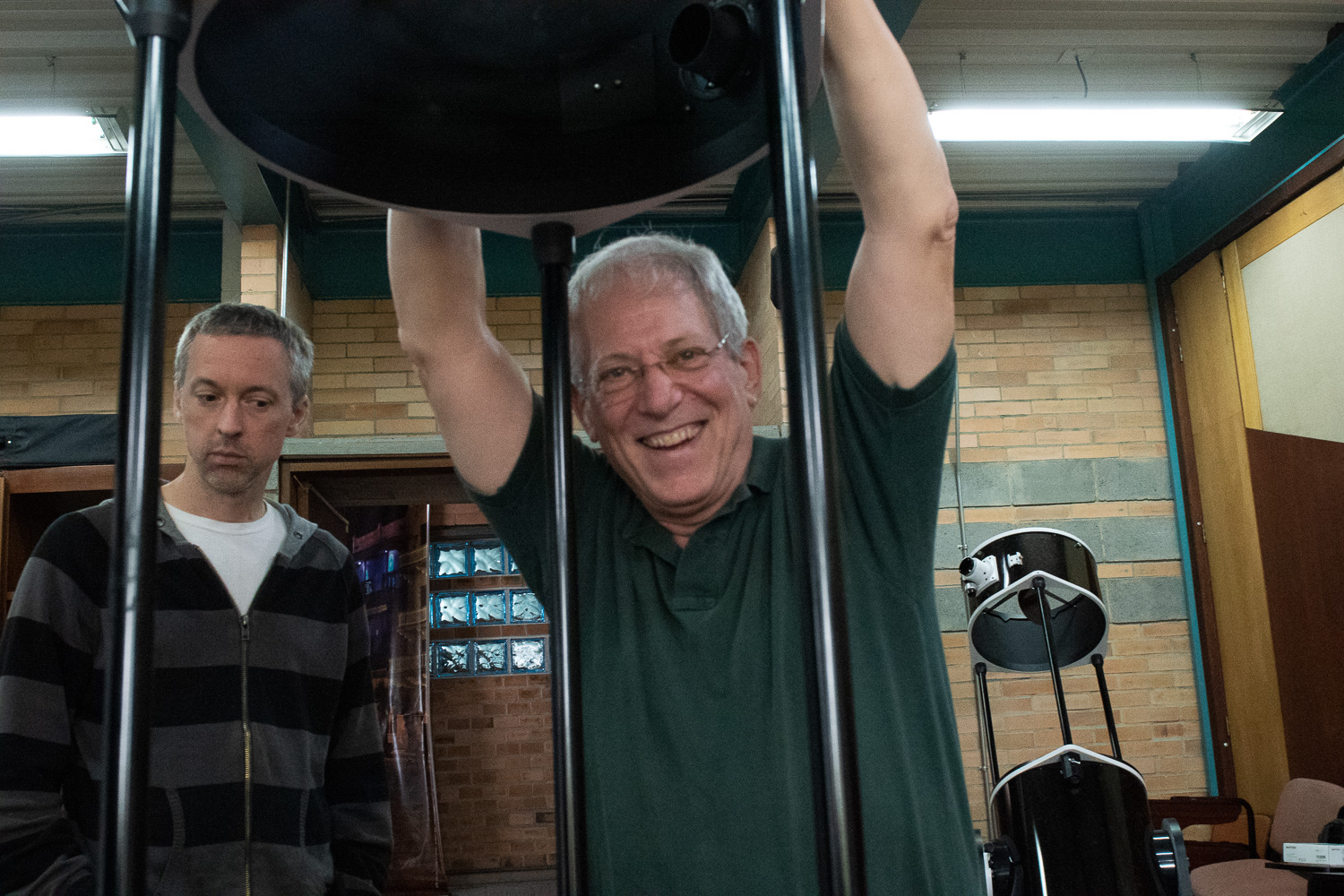 | Paul and Keith have set up their telescope. Yes, we are setting up inside because it's not quite good enough to venture outdoors yet. |