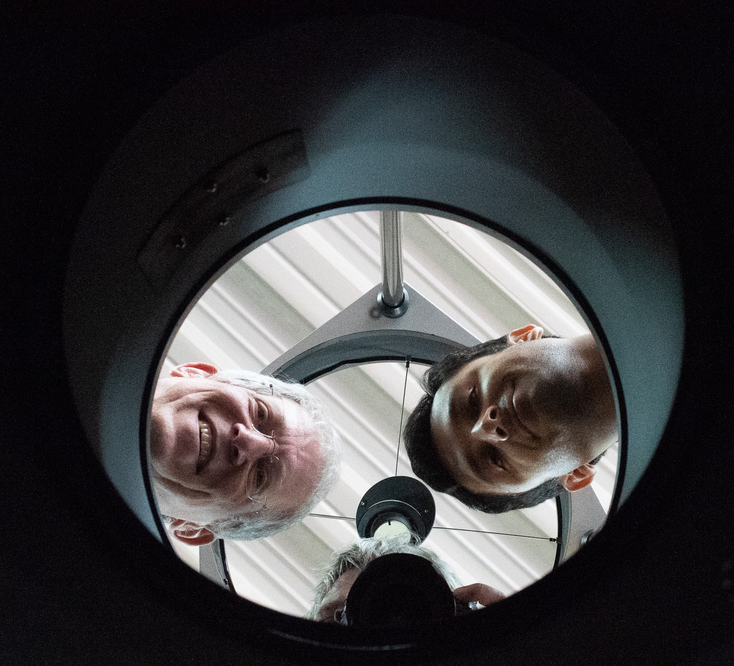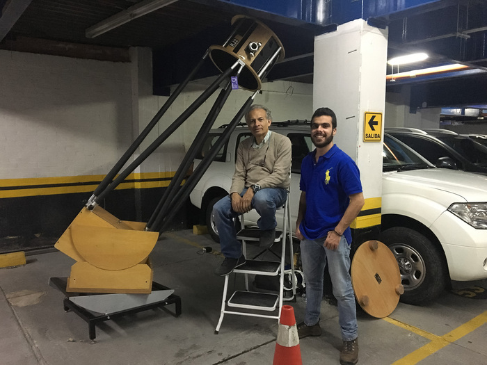 | Meanwhile, Kataline (U. Nacional) and Andres Molina have got the Pablo Escobar telescope up and running. |