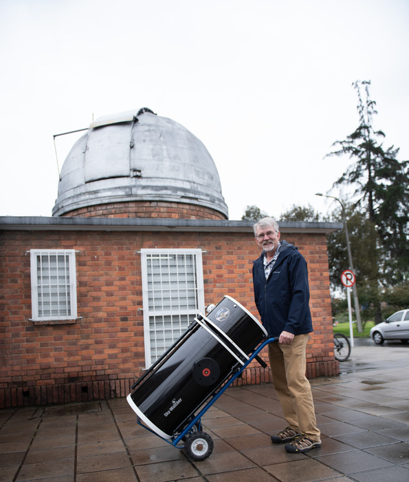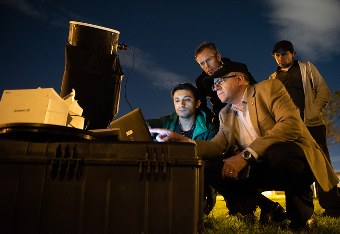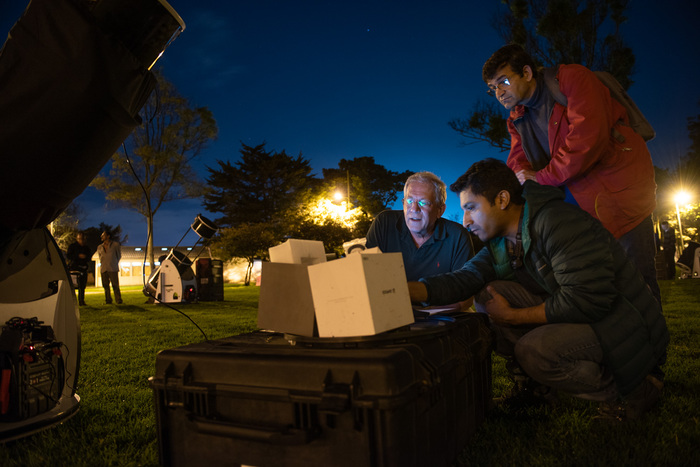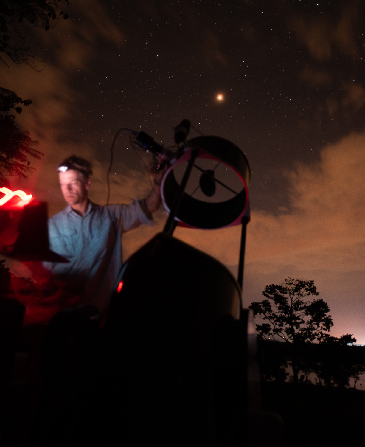 | Kai sets up for our occultation test-run. The idea here is that we will take exactly the same dataset at the real event tomorrow: same exposure, same pointing, same field. |