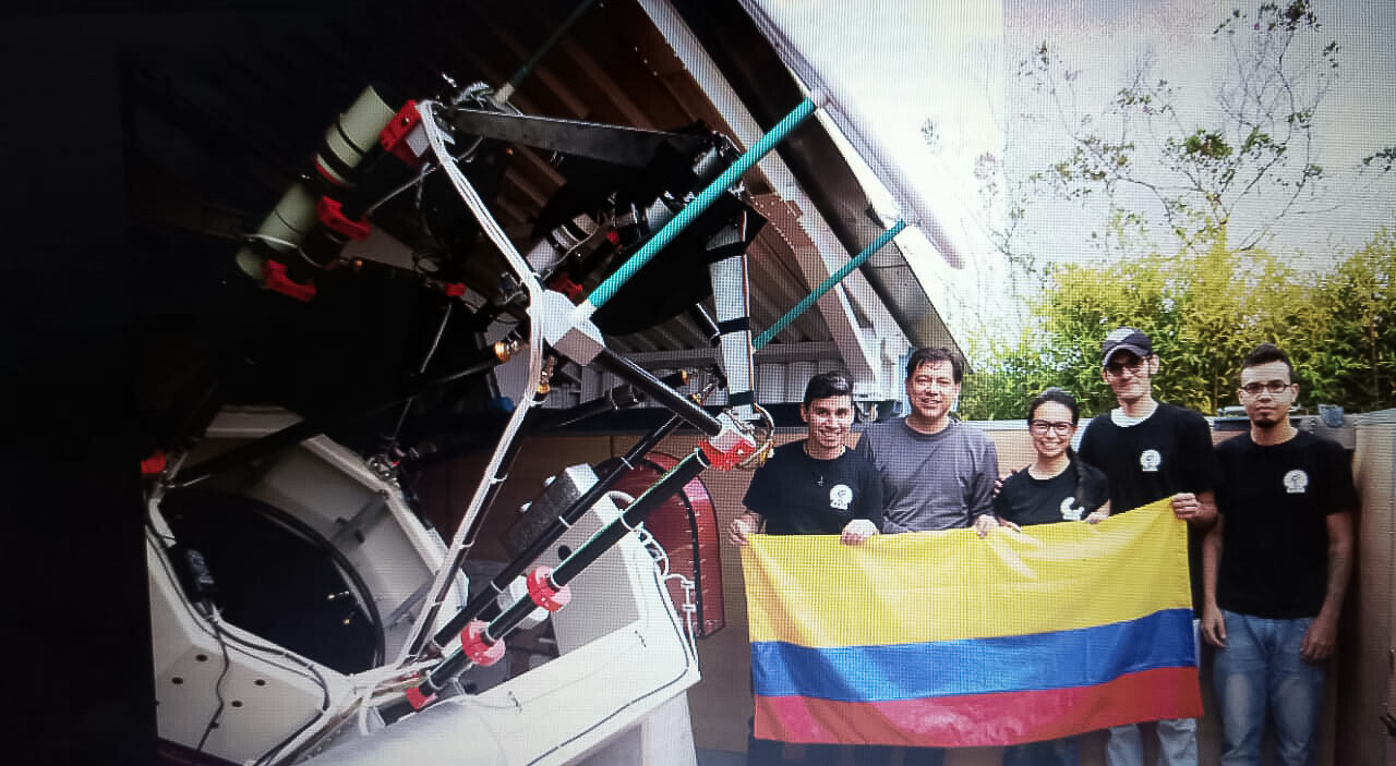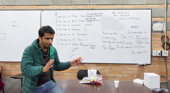| Here's Diana Rojas, who runs the the Asociacion de Astronomia de Colombia (ASASAC). "This is the Pablo Escobar telescope... his personal telescope. It's about 30 years old. He had it so he could see who was approaching from a really long way away. After he was killed, it sat in the office of his lawyer for over a decade. Eventually the lawyer decided he didn't need it, so it ended up at the Observatorio here in Bogota. It has a new mount and the optics are still excellent, so we're going use it to observe the occultation on Friday." |