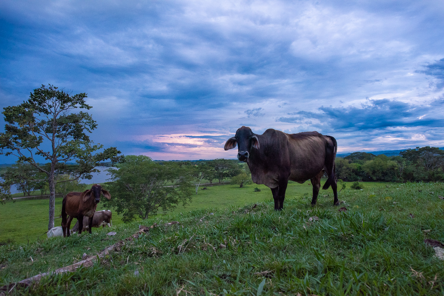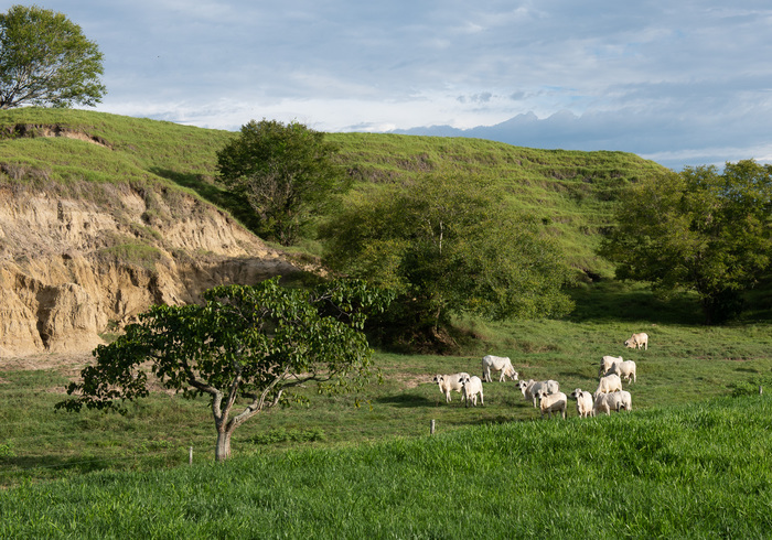 | Then the oil derricks give way to cattle plantations -- a lot of cows, and a ton of intensely beautiful rolling green fields of thick grass. |