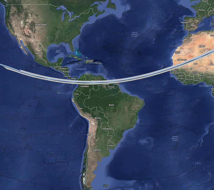 The path for this event passed roughly over Senegal and Colombia. With NASA's support, the mission sent a group of about 25 US-based astronomers to Senegal, and six to Colombia. Both countries have some clouds during the summer season, but the idea was to increase the odds by spreading ourselves geographically. I was assigned to the Colombia team.