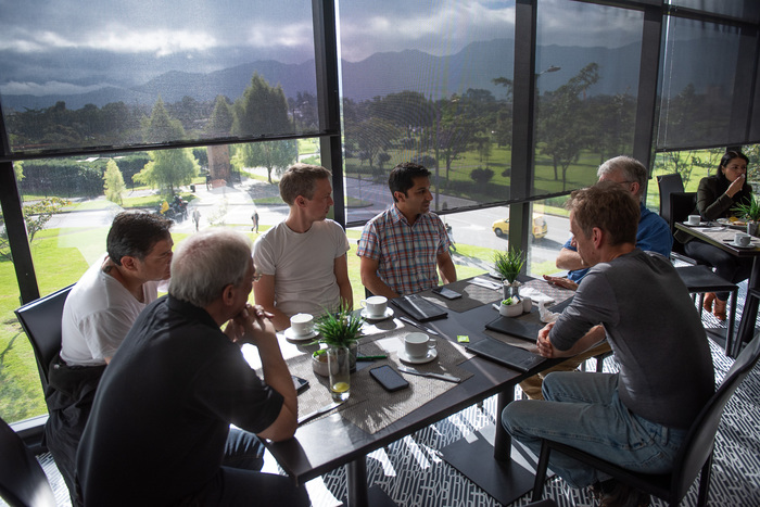 | Time to meet with the locals! We head over the local university (Universidad Nacional de Colombia - Bogota), where we are met by Giovanni Pinzon. With him are Rodrigo, Ted, Aart, and Kai. |