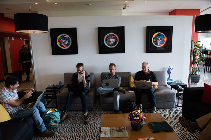 | At the Observatorio, ___, Giovanni, Sergio, and Andres Molina listen to Rodrigo. |
