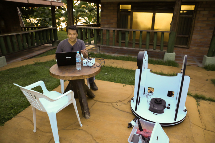 | Rodrigo does some testing before setting up at their pool-side occultation site. Bring on the margaritas! Photo by Ted Blank. |