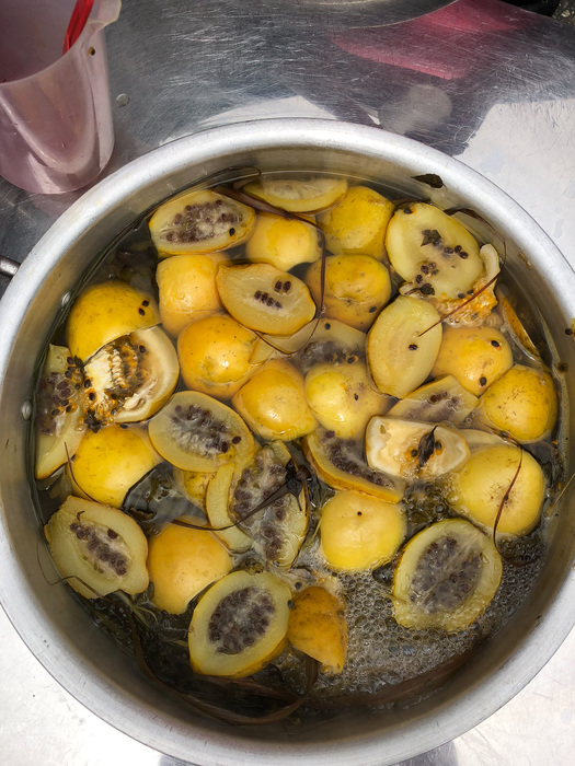 | More tasty beverages! This one is a stew of passionfruit and guava. |