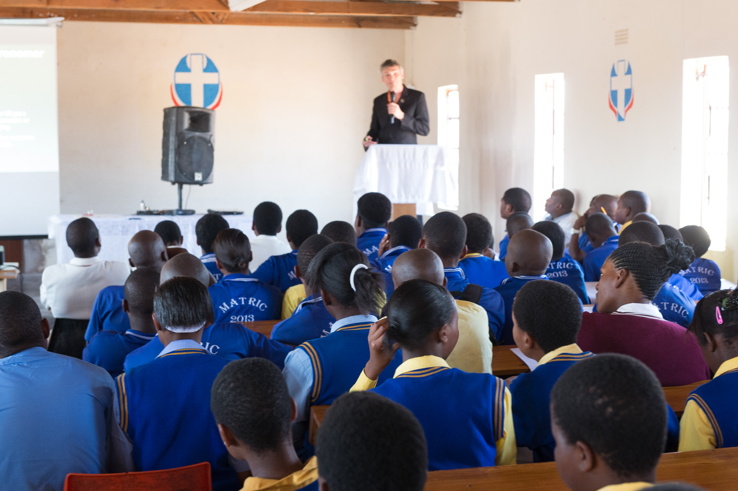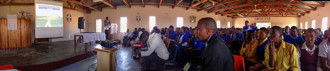 I spent a day with them, giving three long talks (with Q&A longer than the talks!), followed by a night-time observing session with two telescopes I'd brought. Usually school is out at 3 PM, but on this day, everyone stayed until 9. Madikweng has 250 learners, and there were a good number who were able to visit from other schools as well, such as Dendron Secondary, a much larger school with great science closer to Polokwane.