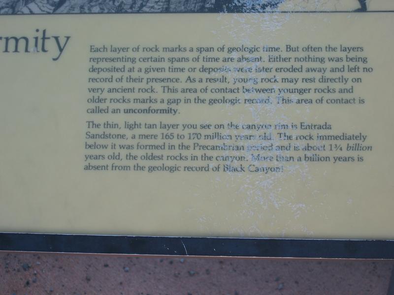 Below: "More than a billion years is absent from the geological record of Black Canyon!" -- a fact that surely rallies the creationists.