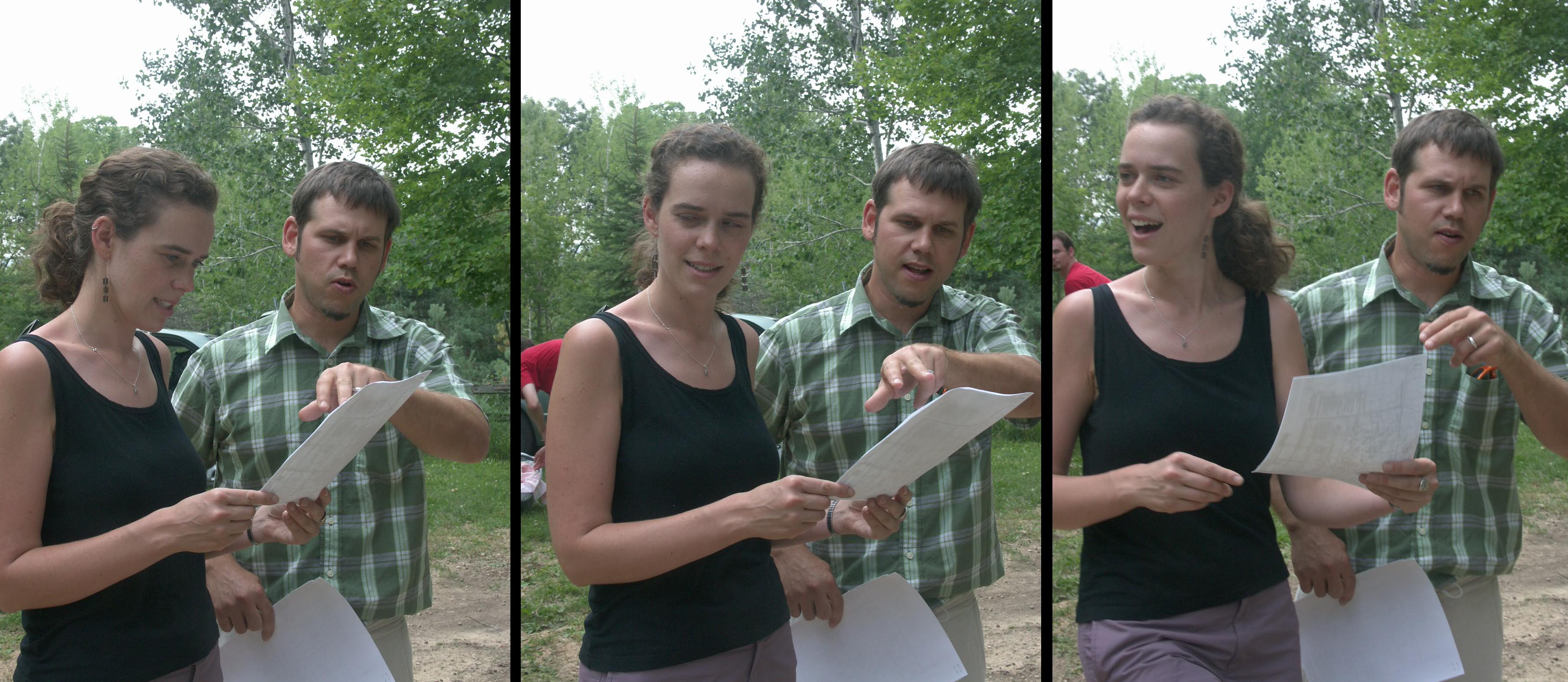 | Morning after the wedding. Dave observes while Eric hides beneath the tree. |