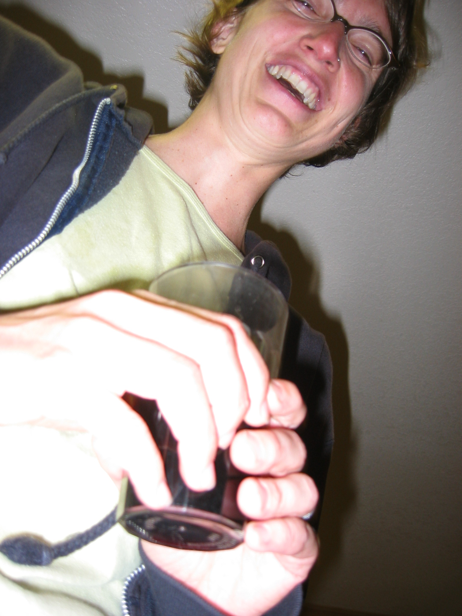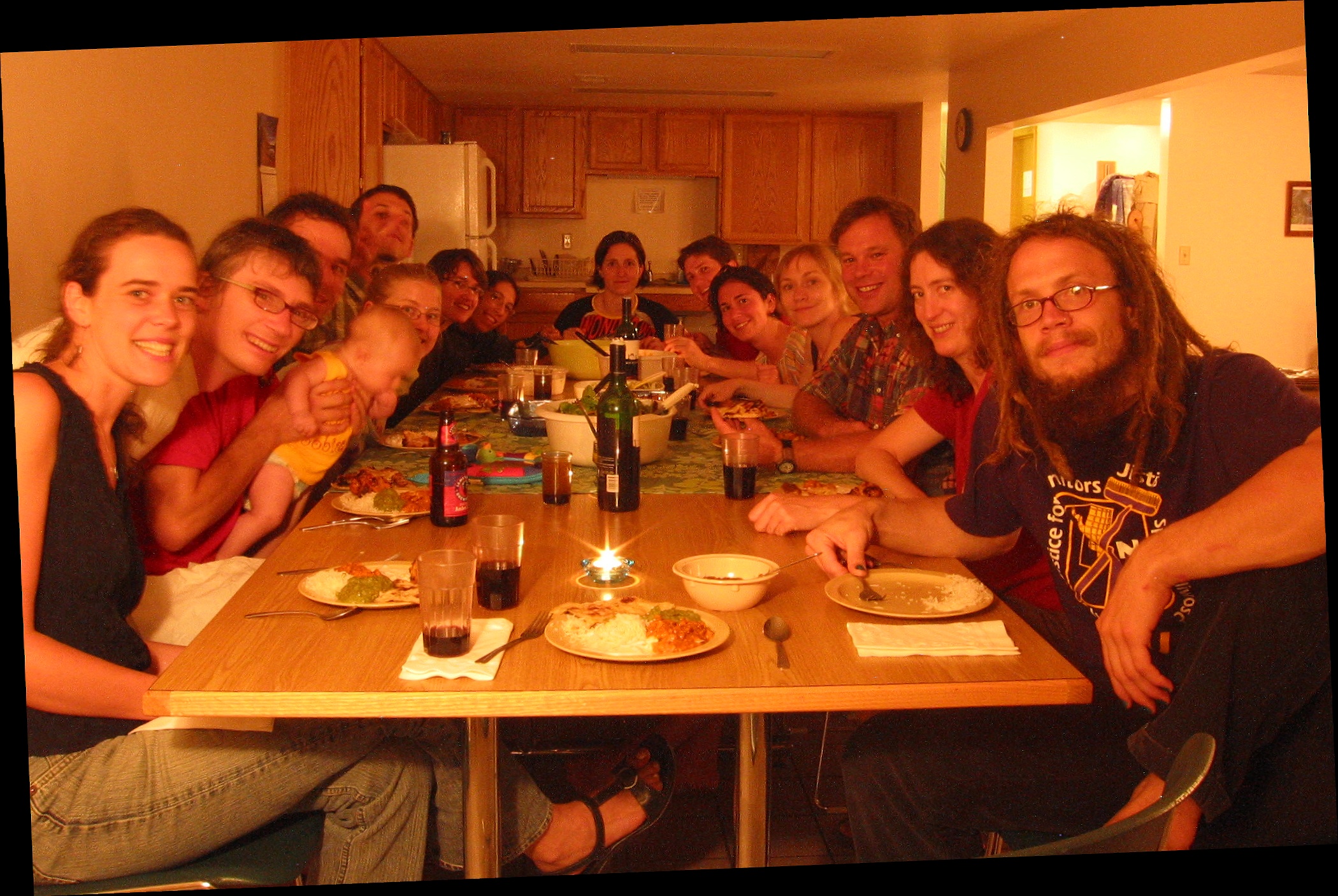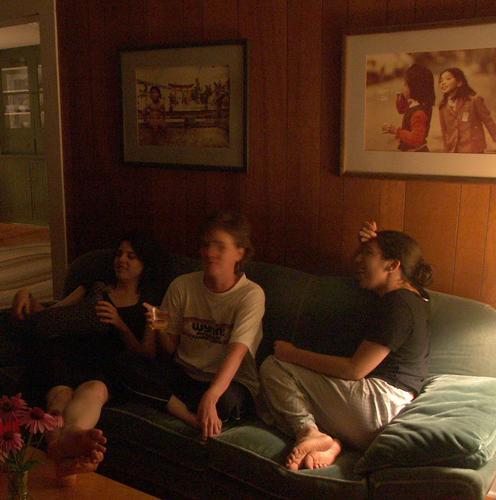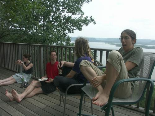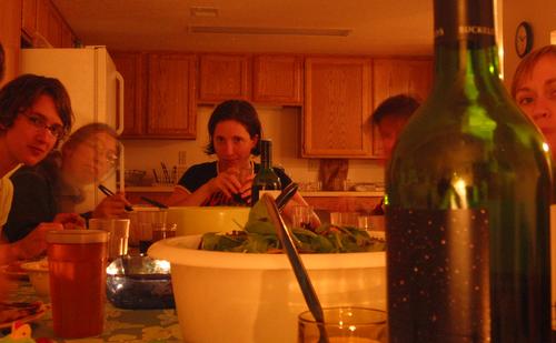 | At the WI farmhouse: Camille, Jessica, Alistair, and Jessie collaborate on drinking
